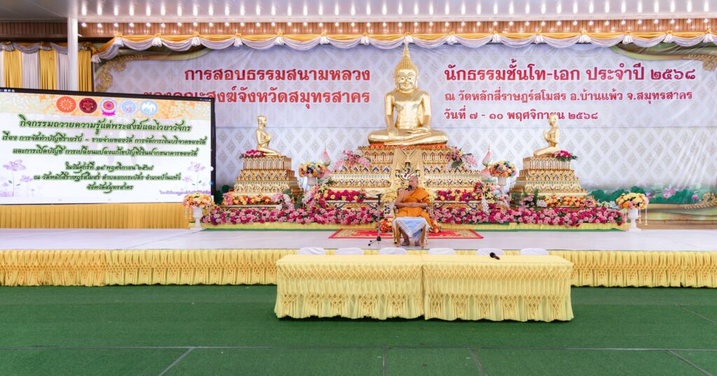 วันศุกร์ที่ 14 พฤศจิกายน 2568 เวลา 13.30 น. โดย นางเจนสิริทร์ คงปาน ผอ.สำนักตรวจเงินแผ่นดิน จ.สมุทรสาคร บูรณาการร่วมกับสำนักงานพระพุทธศาสนาจังหวัดสมุทรสาคร ธาคารกรุงไทย และสำนักงานสรรพากรในพื้นที่ จ.สมุทรสาคร จัดกิจกรรมโครงการถวายความรู้ให้พระภิกษุสงฆ์ ทุกวัดในจังหวัดสมุทรสาคร หัวข้อ “การจัดทำบัญชีรายรับ–รายจ่าย และการจัดการทรัพย์สินของวัด” ณ วัดหลักสี่ราษฎร์สโมสร อำเภอบ้านแพ้ว จังหวัดสมุทรสาคร เพื่อถวายเป็นพระราชกุศลถวายแด่ สมเด็จพระนางเจ้าสิริกิติ์ พระบรมราชินีนาถ พระบรมราชชนนีพันปีหลวง โดยมีนางสาวนันทิดา บัวแย้ม ผู้ตรวจเงินภูมิภาคที่ 3 นายพยุธ นิรันรัตน์ รองผู้ตรวจเงินแผ่นดินภูมิภาคที่ 3 และผู้อำนวยการสำนักตรวจเงินแผ่นจังหวัดในเขตภูมิภาคที่ 3 และคณะข้าราชการ. สตจ.สมุทรสาคร เข้าร่วมสังเกตการณ์ในกิจกรรมดังกล่าว